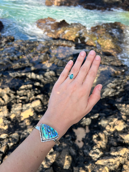 Mermaid Abalone Tear drop Ring ~ Size 8.25